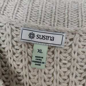 Susina Women's Maxi Knit Dress Long Sleeve Color Block Cream Blue Size XL Cotton Wool Blend Cottagecore Bohemian Cozy