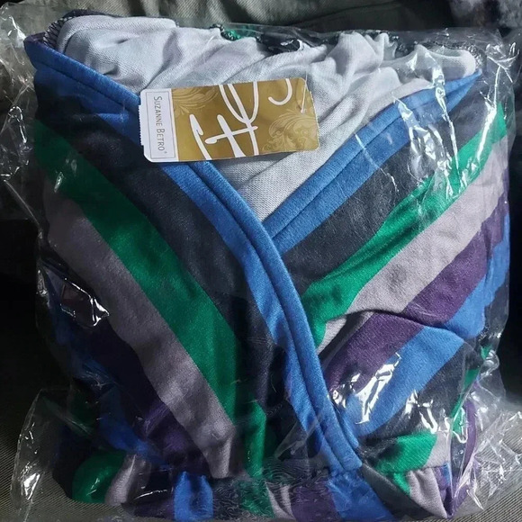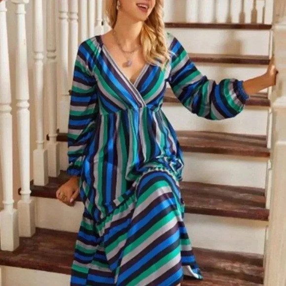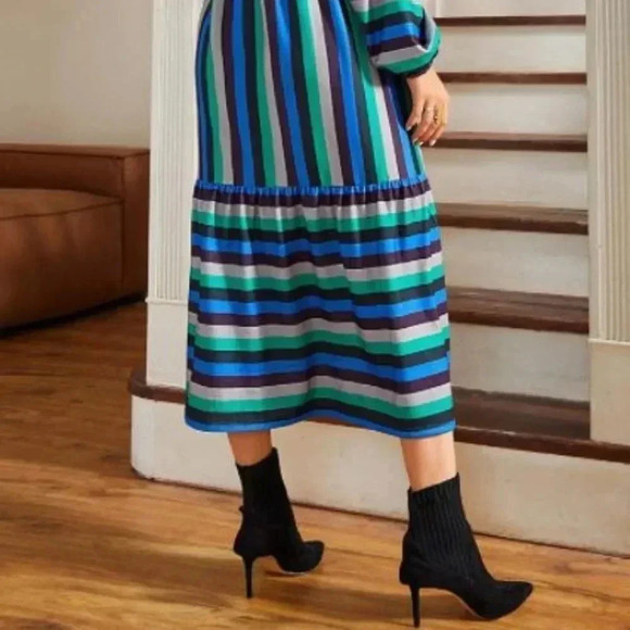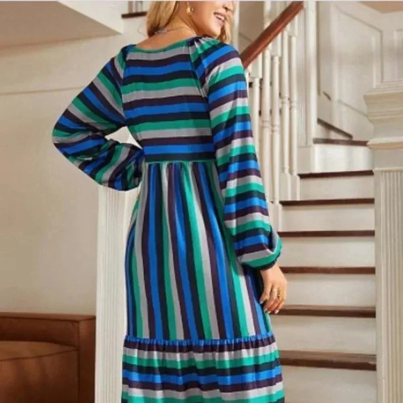 Suzanne Betro | Blue & Green Stripe V-Neck Midi Dress - Plus Size - NWT