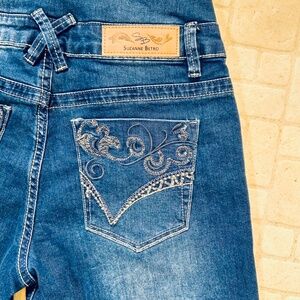 Check out the neat high rise waistband and decorative back pockets and they look great with or without the cuffs rolled up!
