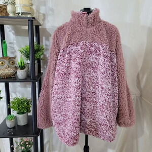 Suzanne Betro Weekend Pink Blush Sherpa Fleece Quarter Zip Pullover Sweater - 1X