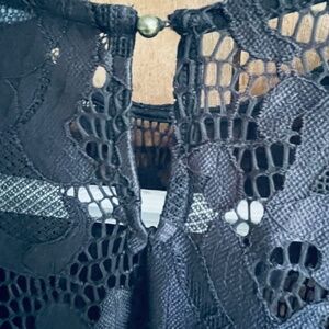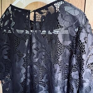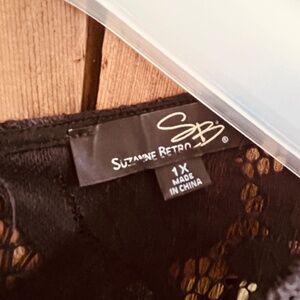 Suzanne Betro Womens 1X Floral Black Full Lace Boho Blouse Short Sleeve