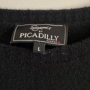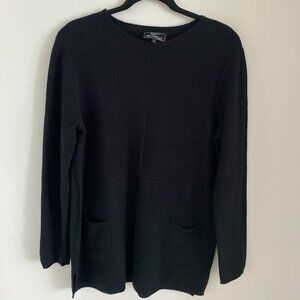 Suzanne's by Picadilly Black Long Sleeve Tunic Sweater Side Slits Front Pockets Size L