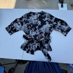 Suzi Shier Black and White Floral Blouse (Size: M)