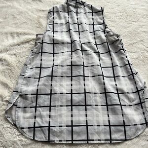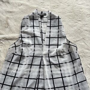 Add a chic edge to your wardrobe with this lightweight sheer sleeveless top by Suzy. Featuring a timeless black and white plaid print, this top offers a flowy silhouette and a flattering deep V-neckline that’s perfect for layering over a bralette, bandeau, or fitted tank. The semi-sheer chiffon-like fabric gives it an airy, effortless vibe, ideal for both casual days and dressy nights.