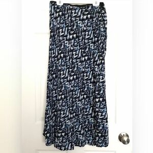 Suzy Shier Abstract Patterned Maxi Skirt L Blue Black