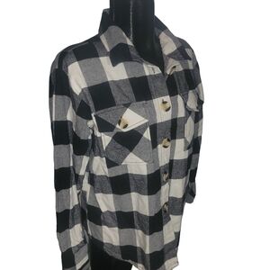Suzy Shier Black And White Plaid Flannel Shirt M