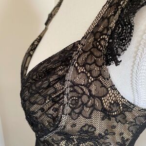 Suzy Shier Black Lace Nude Lined Sleeveless Dress