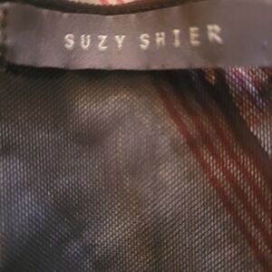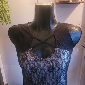 Suzy Shier black sleeveless top with black lace overlay on front & silver thread detailing