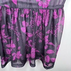 Suzy Shier Black & Pink Sheer Floral Peplum Top Size Medium NWT Feminine