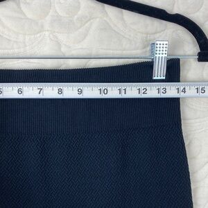 Suzy Shier leggings. Women’s tag size large to XL (see photos for measurements - taken unstretched). Polyester spandex blend. Very stretchy. Black. Texture pattern. Fleece inside. Cold weather leggings. Wide waistband. Banded cuffs.