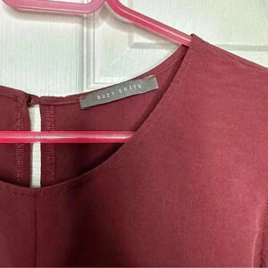 Suzy Shier Blouse Sleeveless Cross Front Burgundy Size Large