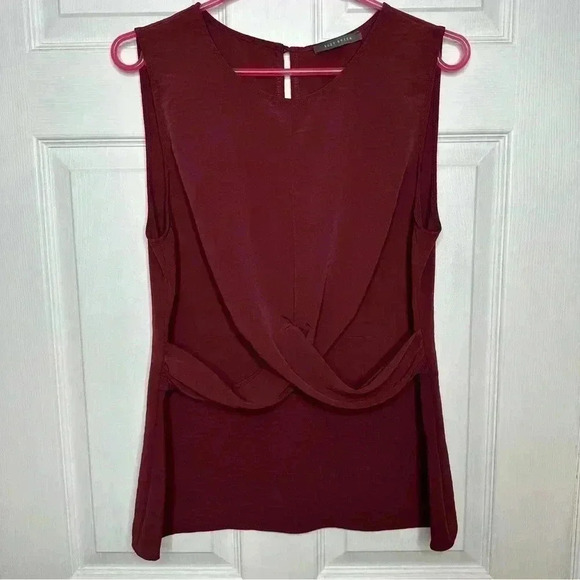 Suzy Shier Blouse Sleeveless Cross Front Burgundy Size Large