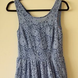Size S, Blue Lacey Dress. Floral Pattern, perfect for spring and summer.