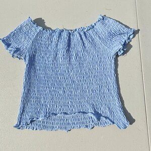 Suzy Shier Blue Scrunched Off-shoulder Crop top