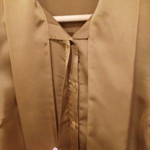 Absolutely stunning! The rich gold colour and tie collar make this an amazing piece. Silky smooth fabric and in great condition.