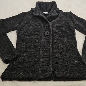Suzy Shier Button-Down Long Sleeves Knitted Cardigan Sweater Gray Small