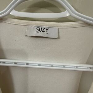 Elevate your style with the Women's Cream Jacket. This elegant piece features a sleek design with convenient zippered pockets, perfect for any occasion.