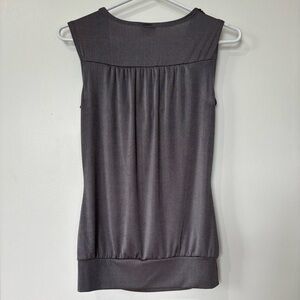 Vintage Y2K dark grey sleeveless top from Suzy Shier with a stylish cowl neck and stretchy material. Great for layering or standalone chic look. PTP: 16in | Length: 25in. Condition: 9/10. Fits like a size Small. Style tags: y2k, vintage glam, minimalist. Shop with ease from a trusted 5-star seller!