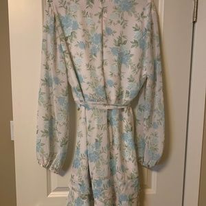 Pretty dress, white with blue flowers and layered with a slip.
