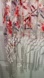 Elegant mesh cardigan with floral design. Features red and blue flowers on a cream base. Mid length sleeves