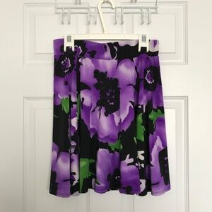 Preloved Suzy Shier floral black and purple with green leaves skirt in size small.