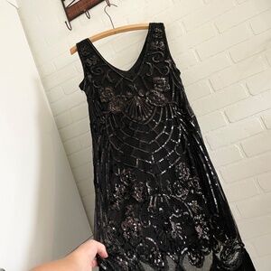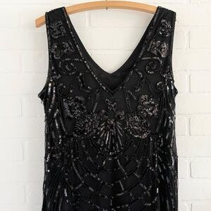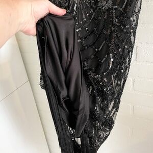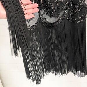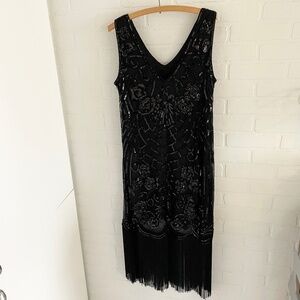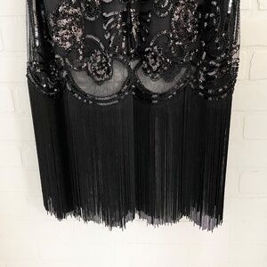Suzy Shier Formal Dress Swing Art deco Great Gatsby Sequin Fringes Black Sz XL