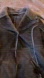 Chic gray leather jacket with cozy shearling trim. Features button closure and stylish pockets. Ideal for cool weather.
