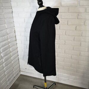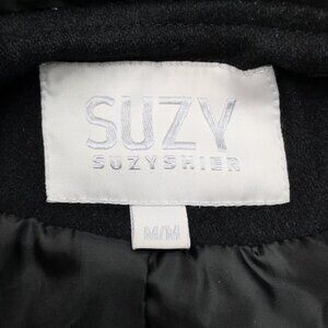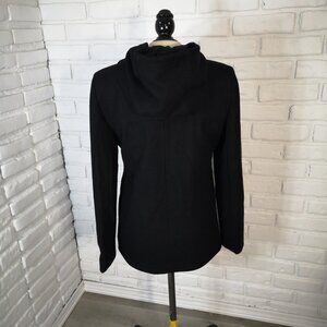 Suzy Shier Ladies Size Medium Black Wool Blend Lined Full Zip Pea Coat w/ Hood