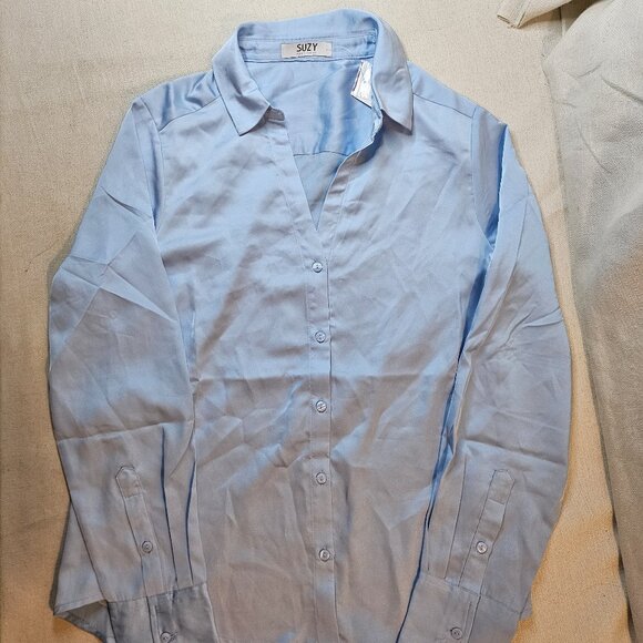 Suzy Shier Long Sleeve Light Blue Button-Front Top - Size S