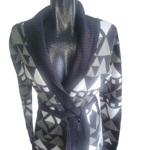 Suzy Shier Multi Colored Long Cardigan with Belt S
