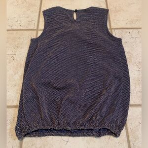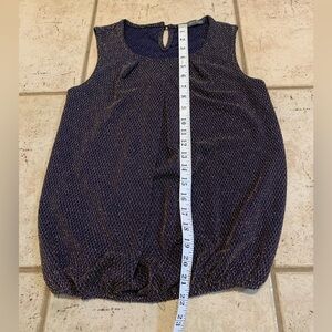 Suzy Shier Navy & Gold Metallic Sparkle Bubble Hem Top, Size S/P