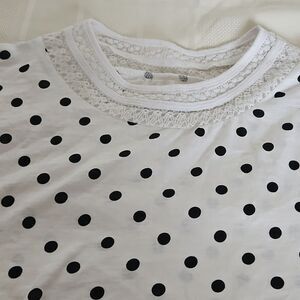 Suzy Shier Polka Dot Lace Detail Summer Top