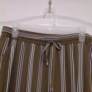 Black/white/olive striped, soft, flowing wide-leg pants. Elastic and drawstring waist. Super soft fabric! With pockets.