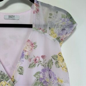 Suzy Shier | Pastel Pink Floral Pleated Maxi Dress | Size L