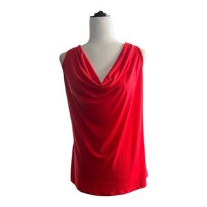 This vibrant red tank top from Suzy Shier features a sophisticated draped design with a sleek sleeveless cut. The soft, flowing fabric and elegant cowl neckline make it a perfect choice for dressy or elegant casual occasions.