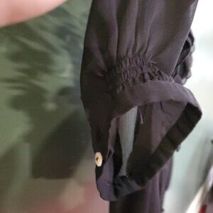 Details: Ruffle V-Neck Collar, Button Detail& Gathering at Sleeve