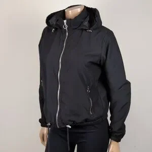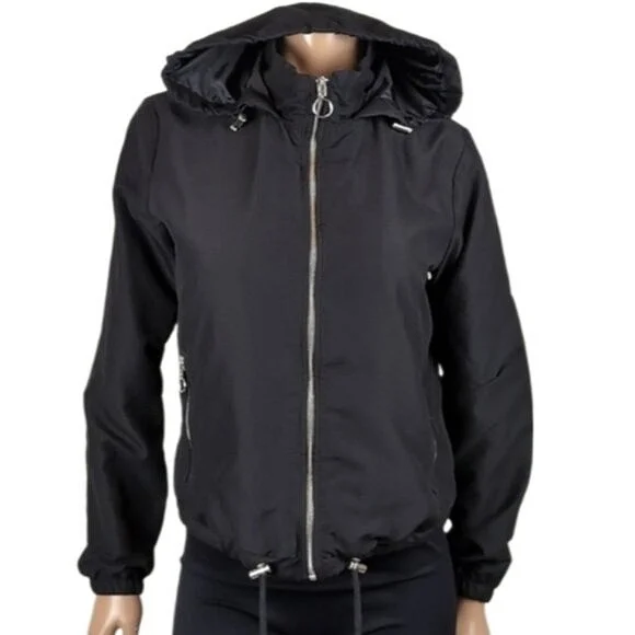 Suzy Shier Soft Shell Hooded Jacket Black Drawstring Adjustable Spring Fall