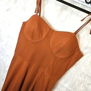 Step into the warmth of summer with this stunning orange dress! Its flowy linen fabric and effortless design make it perfect for balmy days and nights. With a lightly padded bust and a beautiful drape, you'll feel confident and carefree in this vibrant maxi dress.
