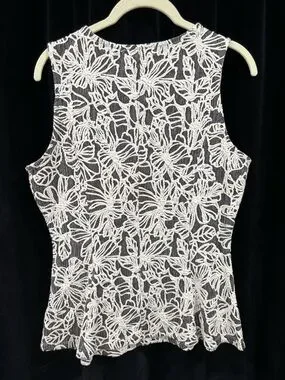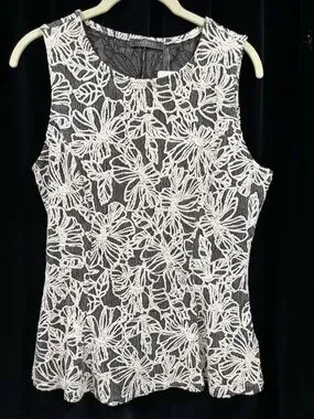 Suzy Shier grey and white floral embroidered sleeveless top, size S. Ptp 18.5” T323