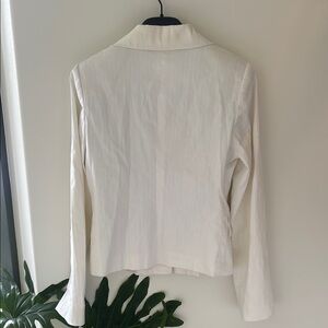Elegant Suzy Shier blazer in white. Features classic lapels and button closure. Perfect for office wear.