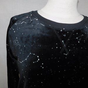 Suzy Shier Women S Black White Space Constellations Velour Long Sleeve Top shirt