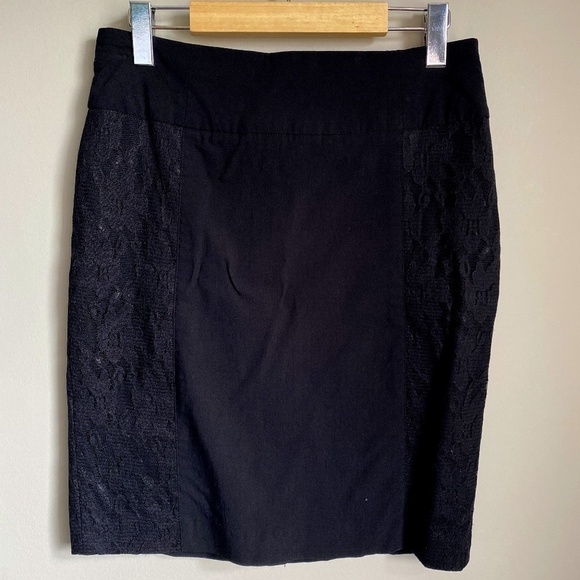 Suzy Shier Women's Black Pull On Midi Skirt Lace Accents Size Medium