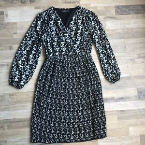 Suzy Shier Womens Dress Midi Black Floral Size Small Accordian Flowy