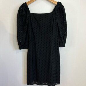 Suzy Shier Women’s XS Black Lined Square Neck Midi Dress Eyelet Puff Sleeve Cute