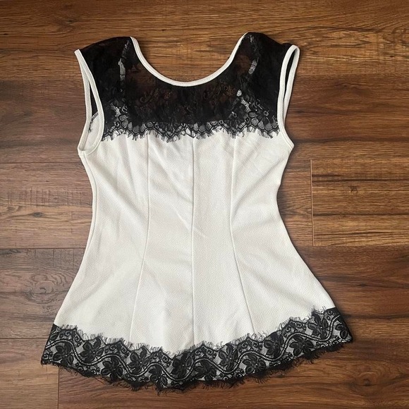 Suzy Shier Y2K Lace Trim Peplum Tank White & Black Lingerie Style Top