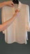This off-white Suzy Shier blouse flows nicely and is very feminine looking. The long sleeves can be rolled up and fastened with a button. V Neck with a collar and open half-way down with 1 button. Back is longer than front by 1 1/2 inches. Size and material tags have been removed as you could see them the semi-sheer fabric.