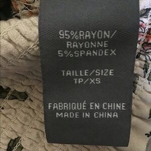 Pretty cream coloured floral top with wide elasticized trim at the hem. Very flattering fit and in excellent condition.