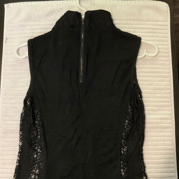 Suzy Shier branded black lace tank top, high necked with a solid back and zipper at the back of the neck. Lightly used.