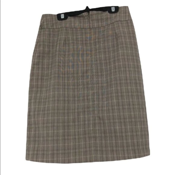 Suzy Shier taupe plaid pencil skirt back slit knee length