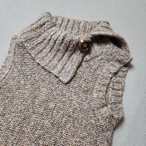 Stylish cowl neck sweater. Sleeveless design. Button detail on collar. Perfect for layering.